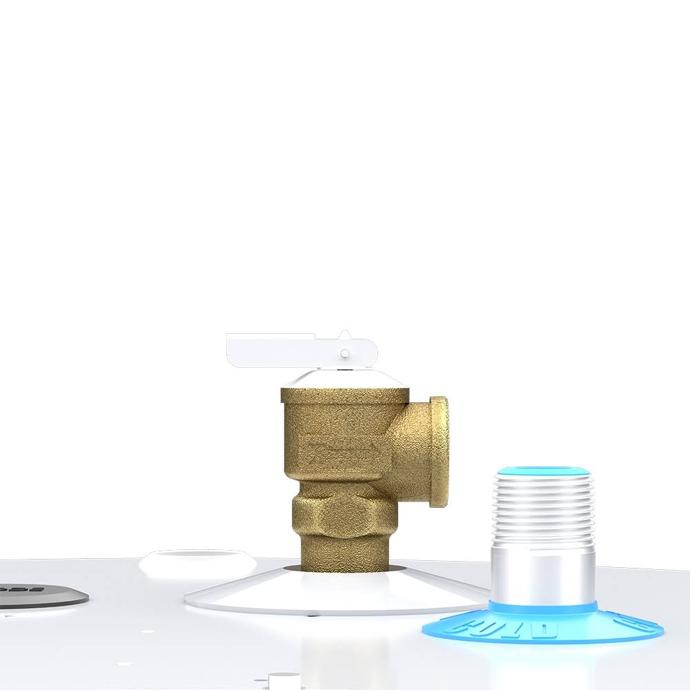 • Temperature and pressure relief valve supplied for top installation