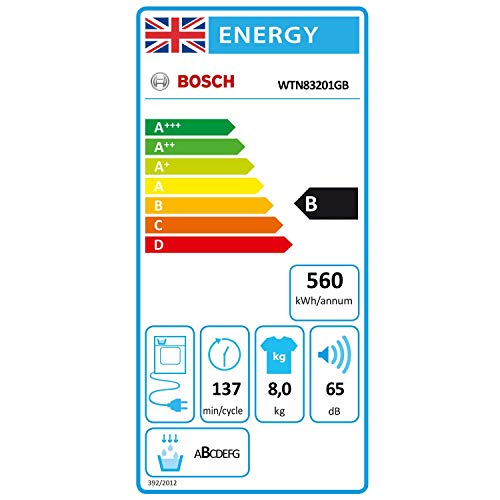 Details: By your side – today, tomorrow and in the future. Bosch’s home appliances. Bosch can't simply cancel your daily routines for you. But they can shorten them for you. As Europe's number one home appliance brand, they always offer absolute peak performance to make your everyday life easier. Their home appliances represent uncompromising quality, technical perfection and absolute reliability. Yesterday, today and in the future. Robert Bosch's first workshop lays the foundations for Bosch Home Appliances. With the establishment of his workshop for precision engineering and electrical engineering, Robert Bosch lays the foundations in Stuttgart for Bosch’s success story. For him, the thought of not producing the very best at all times was intolerable. Robert Bosch always acted on the principle that honest workmanship is more important than temporary gain. This is why, for nearly 130 years, Bosch’s products have stood for uncompromising quality, technical perfection and absolute reliability. The Bosch WTN83201GB is no exception to what our products represent.