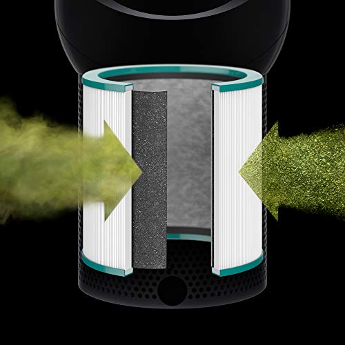 Details: Pure cool me HEPA air purifier Dyson's first personal purifying fan; Delivers a focused stream of purified air to cool you Captures: Fully sealed HEPA filter and activated carbon filter captures 99. 97 degree of allergens and pollutants, including pollen, bacteria, and pet dander Core flow technology: Allows you to precisely adjust airflow to deliver personal cooling with purified air; This makes it ideal for individuals who want to project air precisely where they need it Precise Airflow: Precisely control your airflow with a simple sliding mechanism; By adjusting the dome's position, you can change the airflow angle of the air purifier LCD Display: Built in LCD shows airflow level and filter life Night time mode: Night time mode monitors and purifies using quiet settings, with a dimmed display Low maintenance filters: Low maintenance, easily changeable filters. The filter life is 1 year if used 12 hours a day