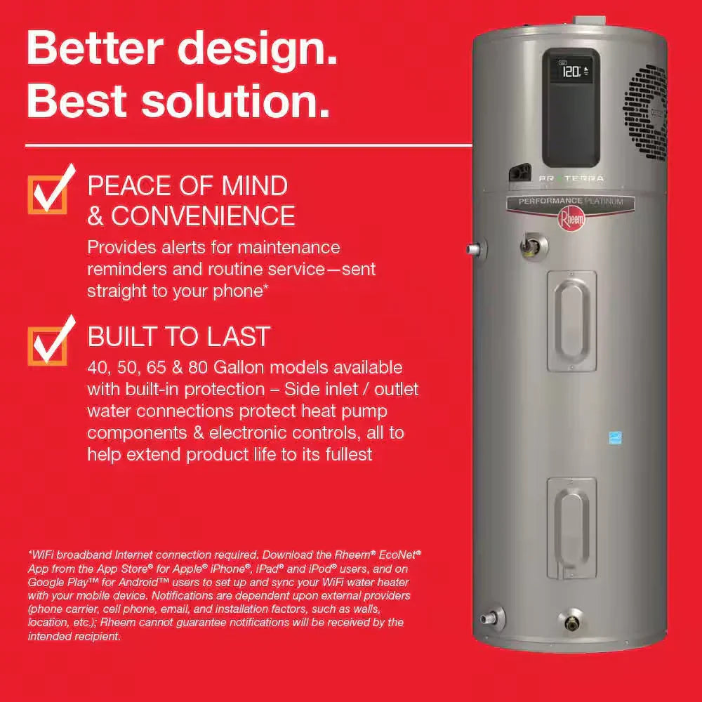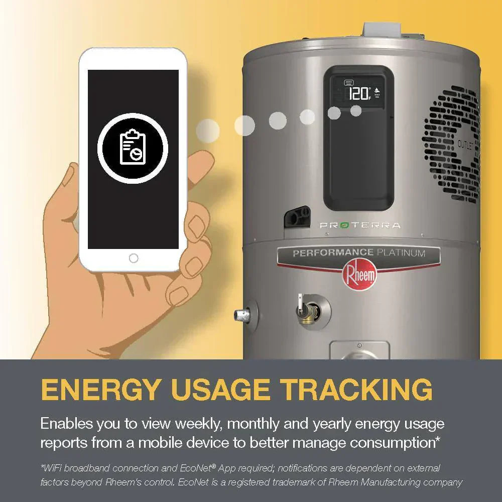 The Rheem ProTerra Electric hybrid is the smartest, most efficient water heater on the market. Heat pump technology makes it 3X MORE EFFICIENT than a new conventional electric model (of the same capacity). Higher efficiency means more energy savings. It's so efficient, it pays for itself in energy cost savings. This model has an estimated energy cost savings of up to $315 per year, or up to $3,150 over 10-years. Plus, it's energy rebate eligible-super high efficiency means it could be eligible for state, local or utility rebates.