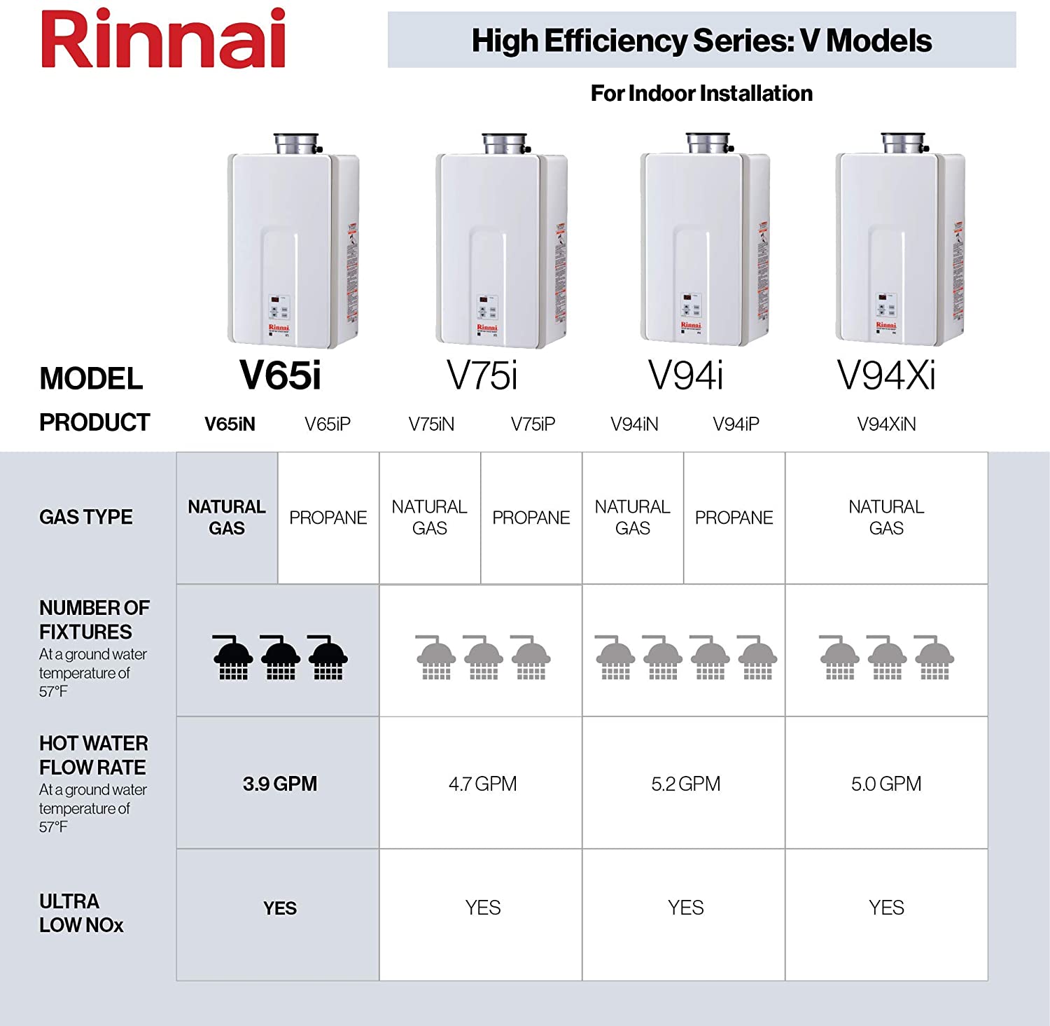 Rinnai V65iN offers top-tier efficiency, comfort, and value for your indoor hot water needs. It's the ideal solution for smaller homes or renovations, boasting a compact and easy-to-install design. Plus, Rinnai stands behind their products with unbeatable warranties, giving you unparalleled peace of mind.