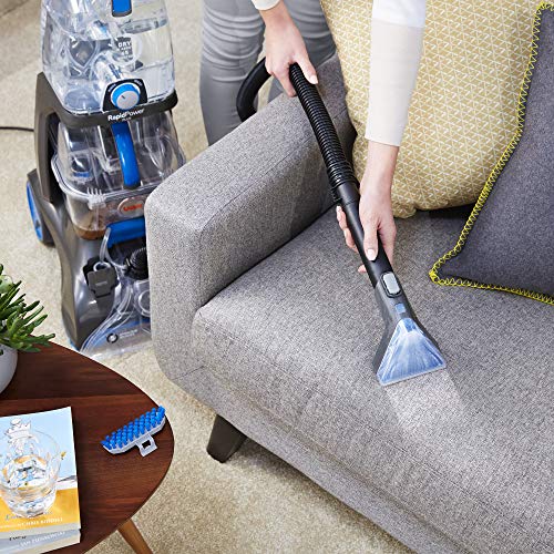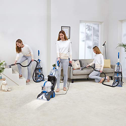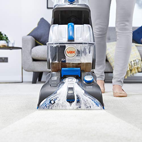 Details: The Rapid power plus carpet washer deep cleans you carpets and leaves your carpets dry in under an hour*. Vax patented spin scrub brushes rotate in different directions to effectively lift and remove any dirt from deep within your carpet pile, whilst its edge to edge brush bars allow you to clean all the way up to the skirting board leaving your carpets looking, feeling and smelling like new. Not only powerful, the rapid power plus has an extra large tank capacity so you can clean for longer. Our auto mix cleaning system takes the hassle out of. Measuring solution and provides the correct mix of solution and water for the best cleaning results. With a total cleaning reach of 10. 5m you can effectively clean above floors, including upholstery, stairs and car interiors for a complete home clean. This carpet washer is embedded with treatment, a more hygienic way to clean your carpets**. comes complete with Vax Platinum solution, Our best ever cleaning solution Tested in quick Clean mode on PP and wool-nylon carpet. Results may vary. Compared to untreated carpet washers